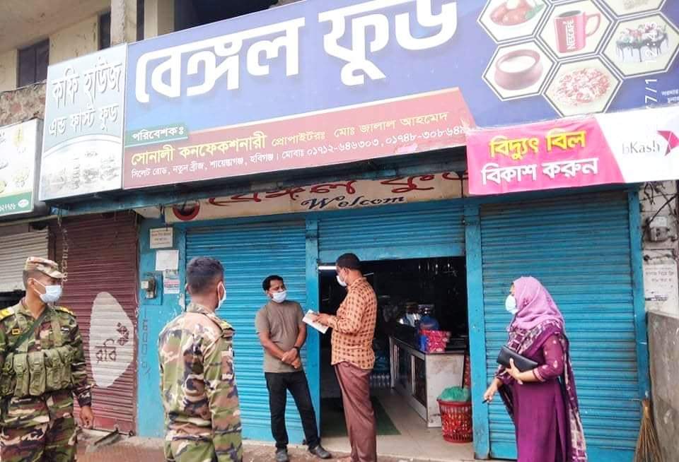 শায়েস্তাগঞ্জে লকডাউন অমান্য করায় জরিমানা।