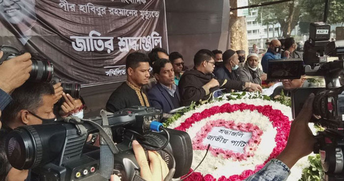 স্মৃতিচারণ শেষে পীর হাবিবুর রহমানকে শ্রদ্ধা জানিয়ে বিভিন্ন সংগঠন ও ব্যক্তির পক্ষ থেকে পুষ্পার্ঘ অর্পণ করা হয়। যেসব প্রতিষ্ঠান ও ব্যক্তির পক্ষ থেকে শ্রদ্ধা নিবেদন করা হয় তার মধ্যে ছিল- সিলেট জেলা প্রেসক্লাব, সিলেট প্রেসক্লাব, ইলেকট্রিনিক মিডিয়া জার্নালিস্ট অ্যাসোসিয়েশন-ইমজা, সিলেট সাংবাদিক ইউনিয়ন, সিলেট ফটোজার্নালিস্ট অ্যাসোসিয়েশন, বাংলাদেশ প্রতিদিন সিলেট অফিস, দৈনিক যুগান্তর সিলেট অফিস, সিলেট সিটি করপোরেশনের মেয়র, সিলেট জেলা ও মহানগর আওয়ামী লীগ, সিলেট জেলা ও মহানগর জাসদ, সিলেট চেম্বার অব কমার্স অ্যান্ড ইন্ডাস্ট্রিজ, সিলেট জেলা আইনজীবী সমিতি, সিলেট বিভাগীয় ক্রীড়া সংস্থা, সিলেট জেলা ক্রীড়া সংস্থা, সিলেট জেলা ও মহানগর যুবলীগ, সম্মিলিত সাংস্কৃতিক জোট, সম্মিলিত নাট্য পরিষদ, সিলেট ক্লাব, সিলেট স্টেশন ক্লাব, টিলাগড় ক্লাব, সিলেট মহানগর ছাত্রলীগ, যুক্তরাজ্য আওয়ামী লীগ, যুক্তরাজ্য জাসদ, ইনোভেটর, দেশ ফাউন্ডেশন যুক্তরাজ্য, হৃদয়ে একাত্তর, বঙ্গবন্ধু লেখক ফোরাম, গোবিন্দগঞ্জ আবদুল হক স্মৃতি কলেজ, আমরা মুক্তযোদ্ধা সন্তান, জগন্নাথপুর সমিতি, সুনামগঞ্জ সমিতি, সিলেটভিউটোয়েন্টিফোরডটকম, বাংলাভিউ, বাধন সাহিত্য সংস্থা, আহ্বান সাংস্কৃতিক সংগঠন, গণমাধ্যম কমিশন, ইব্রাহিম স্মৃতি সংসদ, বাংলাদেশ শহিদ স্মৃতি সংসদ, সম্মিলিত সামাজিক আন্দোলন, বন্ধু এক্সপ্রেস সুনামগঞ্জ।