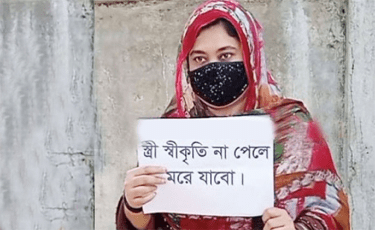 সিলেটের এক যুবকের বাড়ির সামনে গত দুদিন ধরে স্ত্রীর স্বীকৃতি পেতে অবস্থান ধর্মঘট করছেন এক নারী।
