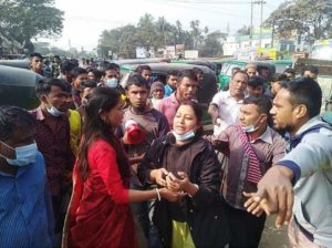 ১/ ঘাতক ট্রাক ঘিরে রেখেছেন জনতা।