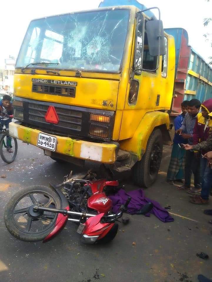 স্ত্রীর সামনে দুর্ঘটনায় স্বামীর মৃত্যু।