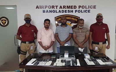 বিমানবন্দরে ১৪ কেজি সোনাসহ ৩ জন গ্রেপ্তার।