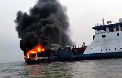 মেঘনায় ফেরিতে অগ্নিকান্ড।