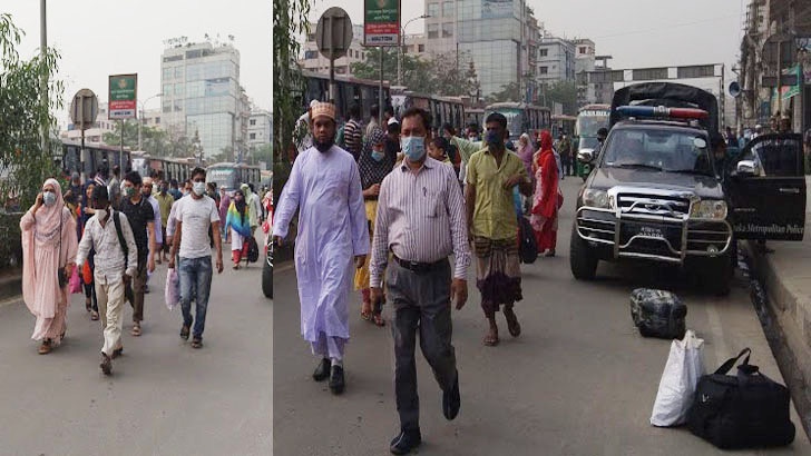 করোনা ভাইরাসের বিস্তার রোধ ও রাজধানী ঢাকাকে সুরক্ষিত রাখতে আশপাশের ৭ জেলায় লকডাউন ঘোষণা করেছে সরকার। গতকাল মঙ্গলবার সকাল থেকেই এ সকল জেলায় লকডাউন শুরু হয়েছে। তবে হঠাৎ লকডাউন ঘোষণায় বিপাকে পড়েছেন অনেকেই। বিশেষ করে বিপাকে পড়েছে নারায়ণঞ্জ ও মুন্সিগঞ্জ থেকে ঢাকায় চাকরির উদ্দেশ্যে আসা লোকজন। পরিবহন না পেয়ে কেউ পায়ে হেটে কেউবা চারগুন ভাড়া দিয়ে সিএনজিতে যাতায়াত করছে। বেশী বিপাকে পড়েছে ঢাকা চট্রগ্রাম মহাসড়কে যাতায়াতকারী দুরপাল্লার বাসে এসে নারায়ণগঞ্জ সীমানায় নামার পর কেউ আটকা পড়েছে মেঘনা গজারিয়া এলাকায় কেউ ভুলতা গাউছিয়া এলাকায়। তবে সাইনবোর্ড পর্যন্ত আসা প্রায় ৫শতাধিক বাসকে ফেরত পাঠিয়েছে প্রশাসন।