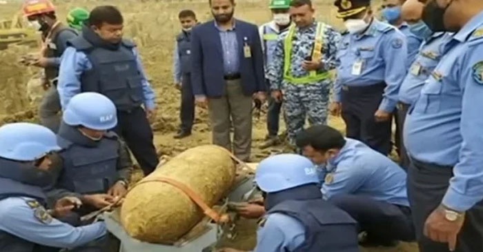 বোমাটি উদ্ধার ও নিষ্ক্রিয় করতে কাজ করে বিমানবাহিনীর বোম্ব ডিসপোজাল ইউনিট। বোমাটি উদ্ধারের পর ময়মনসিংহ মুক্তাগাছায় বিমানঘাটিতে নেয়া হচ্ছে।