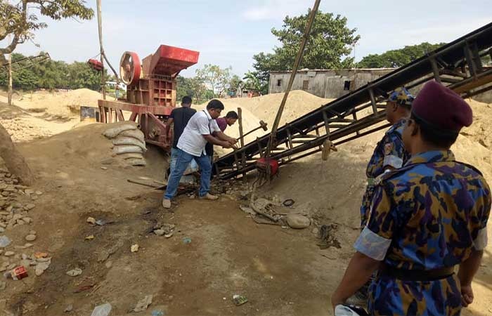 সিলেটে অবৈধ স্টোন ক্রাশার মেশিনের বিরুদ্ধে অভিযান।