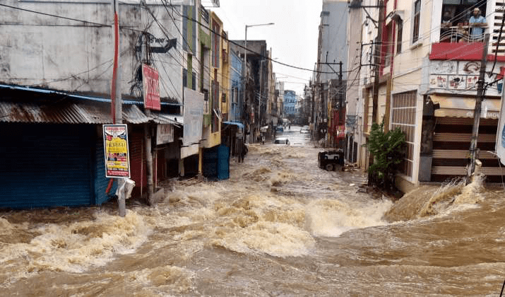 তিনদিনের বিরামহীন বৃষ্টিতে বিপর্যস্ত ভারতের হায়দরাবাদ, তেলেঙ্গানা ও অন্ধ্রপ্রদেশ। বন্যার পানিতে ভেসে গেছে রাস্তাঘাট। হায়দরাবাদের ফলকনুমার বারকাস এলাকার পরিস্থিতি আরো