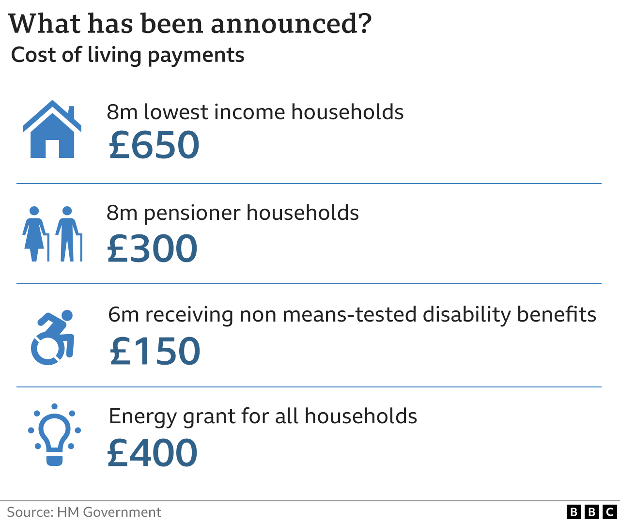 ক্রমবর্ধমান মূল্যস্ফীতি মোকাবেলায় নতুন পদক্ষেপের প্যাকেজের অংশ হিসাবে যুক্তরাজ্যের প্রতিটি পরিবার এই শরতে ৪০০ পাউন্ড এনার্জি বিল ছাড় পাবে। চ্যান্সেলর